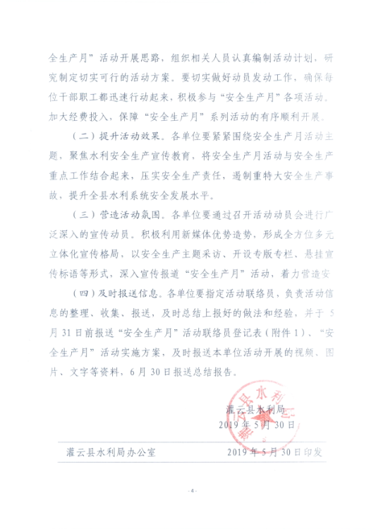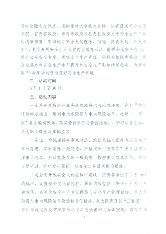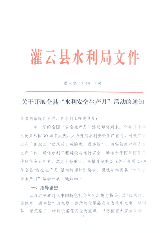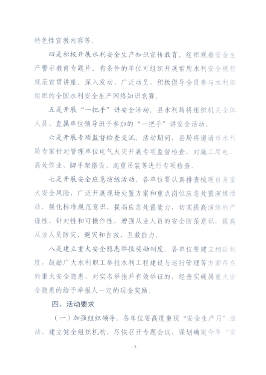 关于开展全县“水利安全生产月”活动的通知