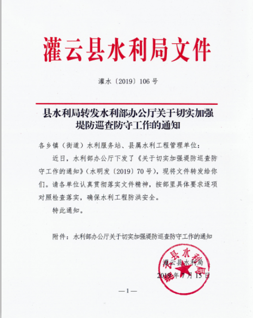 县水利局转发水利部办公厅关于切实加强提防巡查防守工作的通知