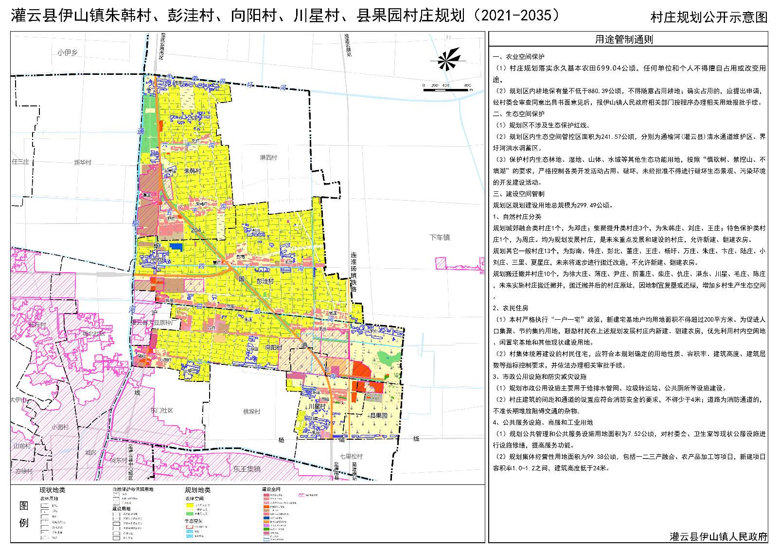 灌云县伊山镇朱韩村、彭洼村、向阳村、川星村、县果园村庄规划(2021-2035)