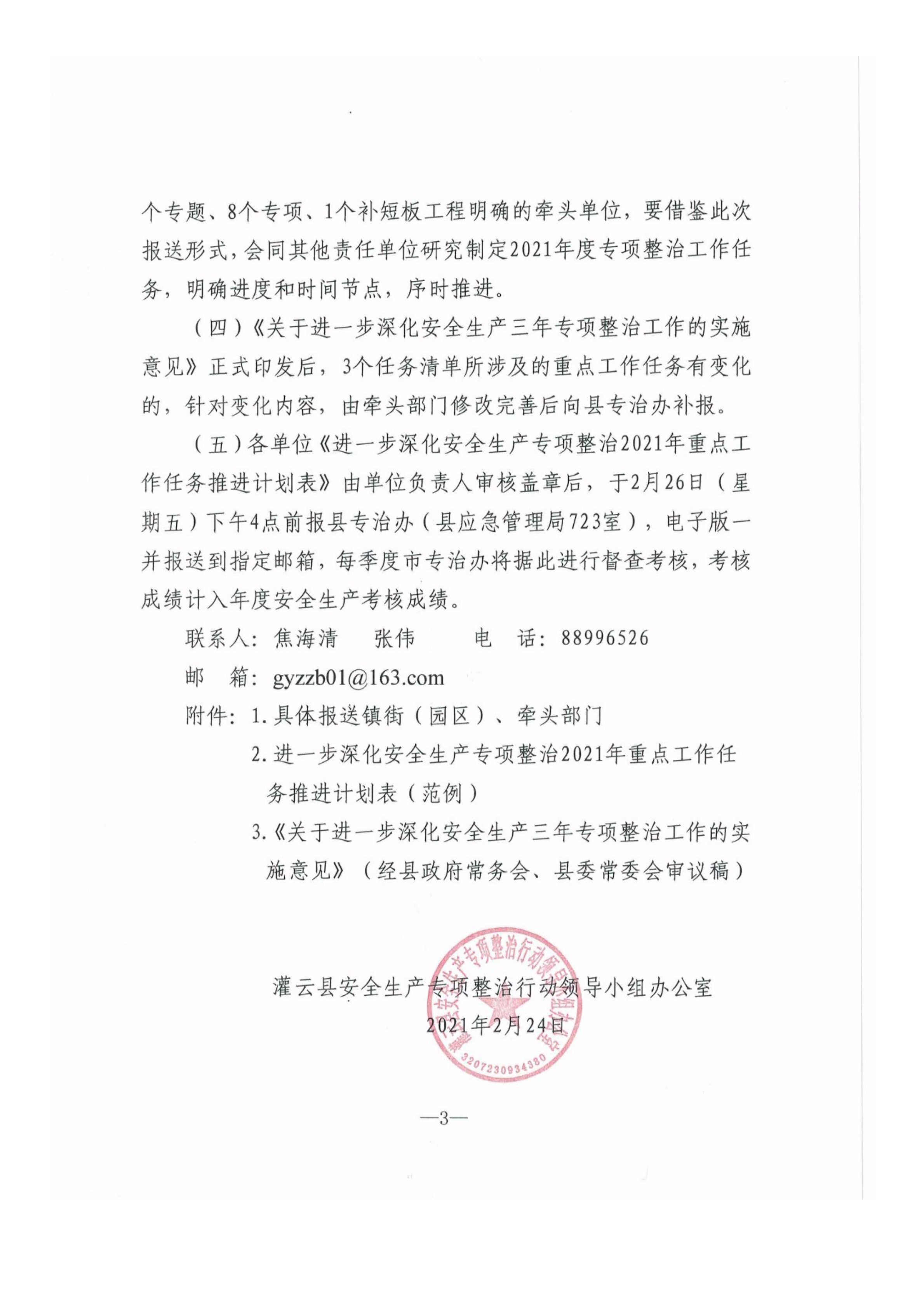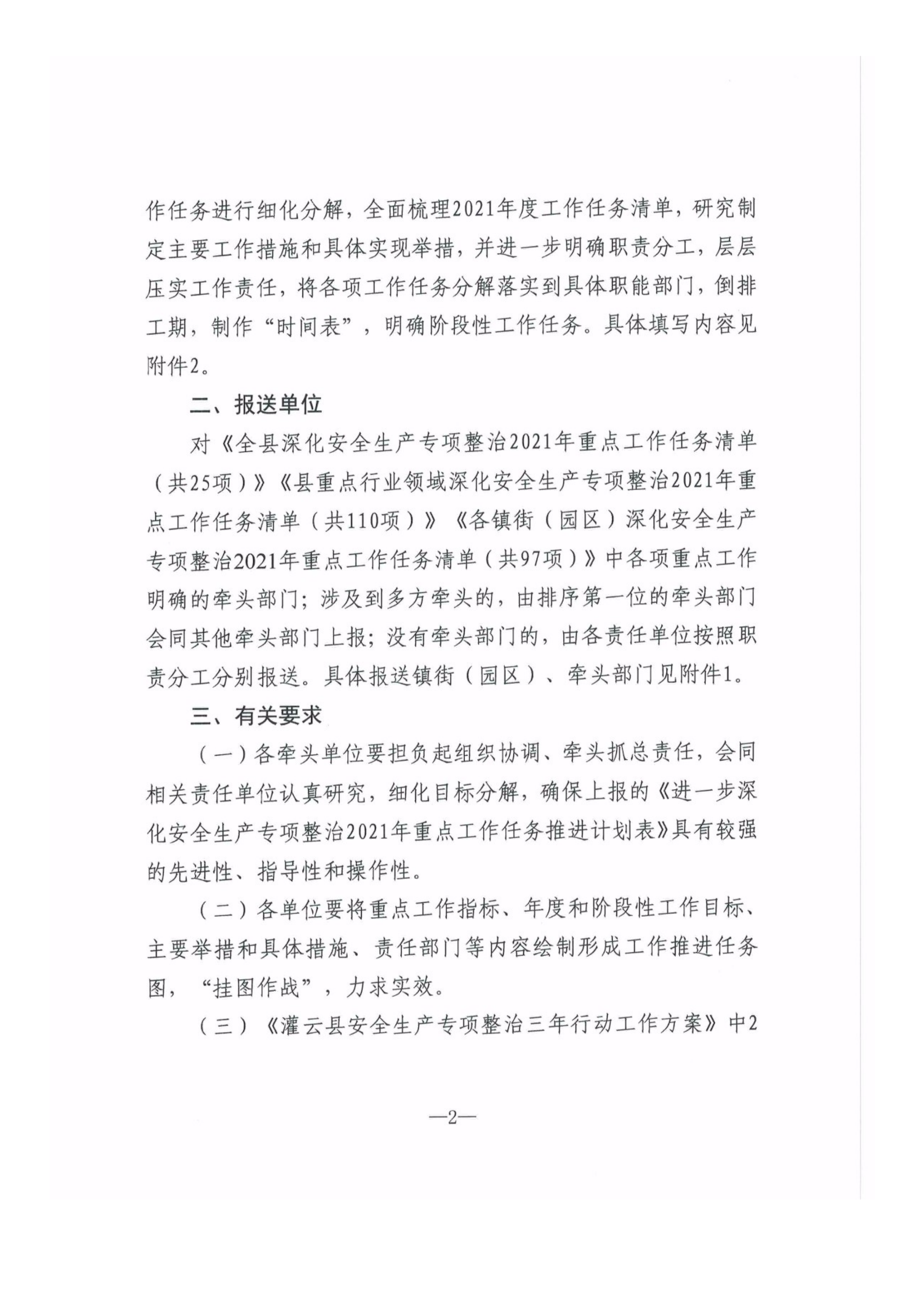 关于报送进一步深化安全生产专项整治2021年重点工作任务推进计划表的通知