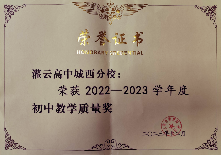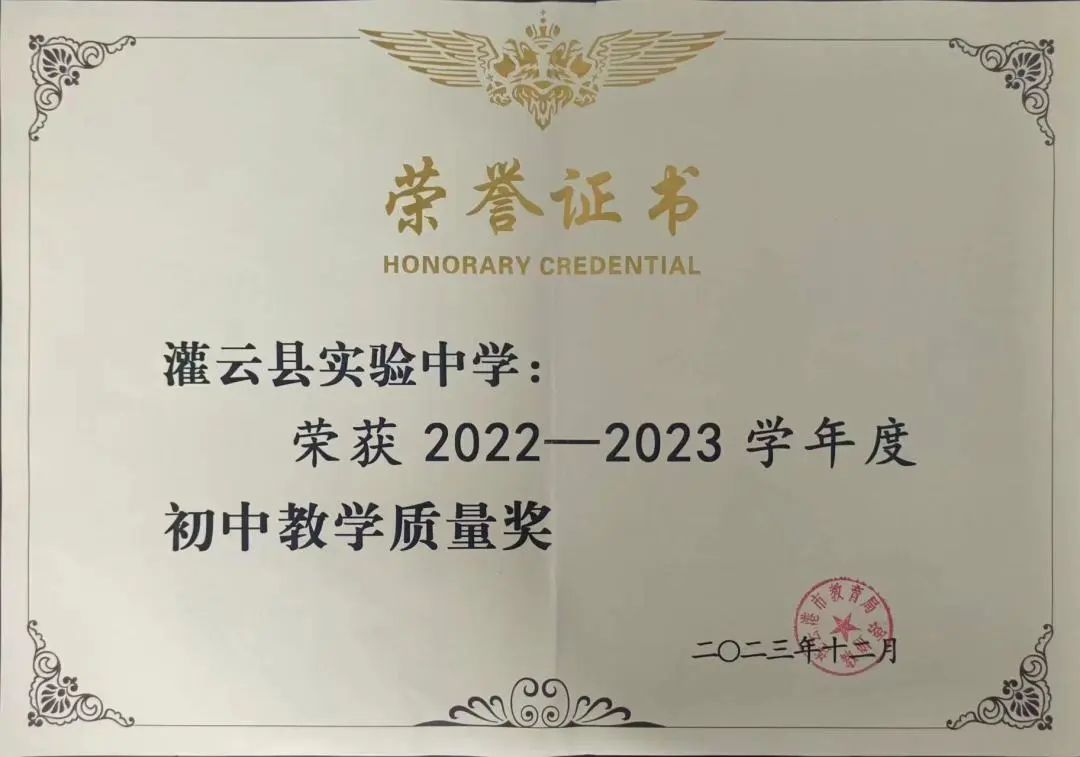 近日,连云港市2022-2023学年度初中教学质量奖获奖名单公布,灌云县实验中学和灌云县城西实验中学2所学校光荣上榜。